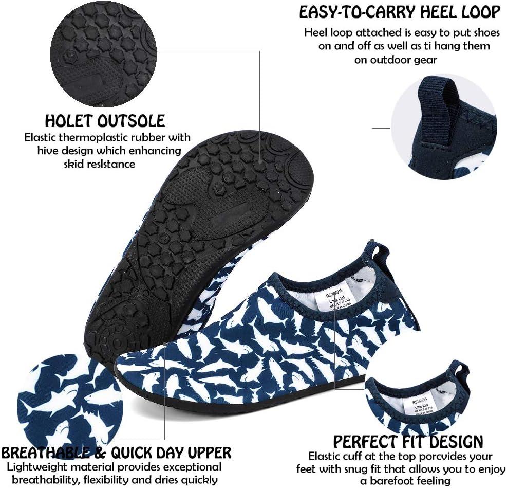 HIITAVE Kids Water Shoes Non-Slip Beach Swim Barefoot Quick Dry Aqua Pool Socks for Boys & Girls Toddler(Tp/Blue/Green/Shark)