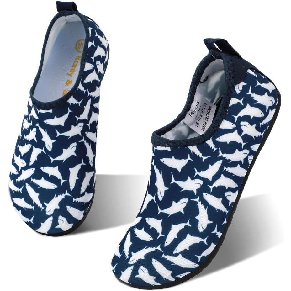 HIITAVE Kids Water Shoes Non-Slip Beach Swim Barefoot Quick Dry Aqua Pool Socks for Boys & Girls Toddler(Navy/White/Shark)