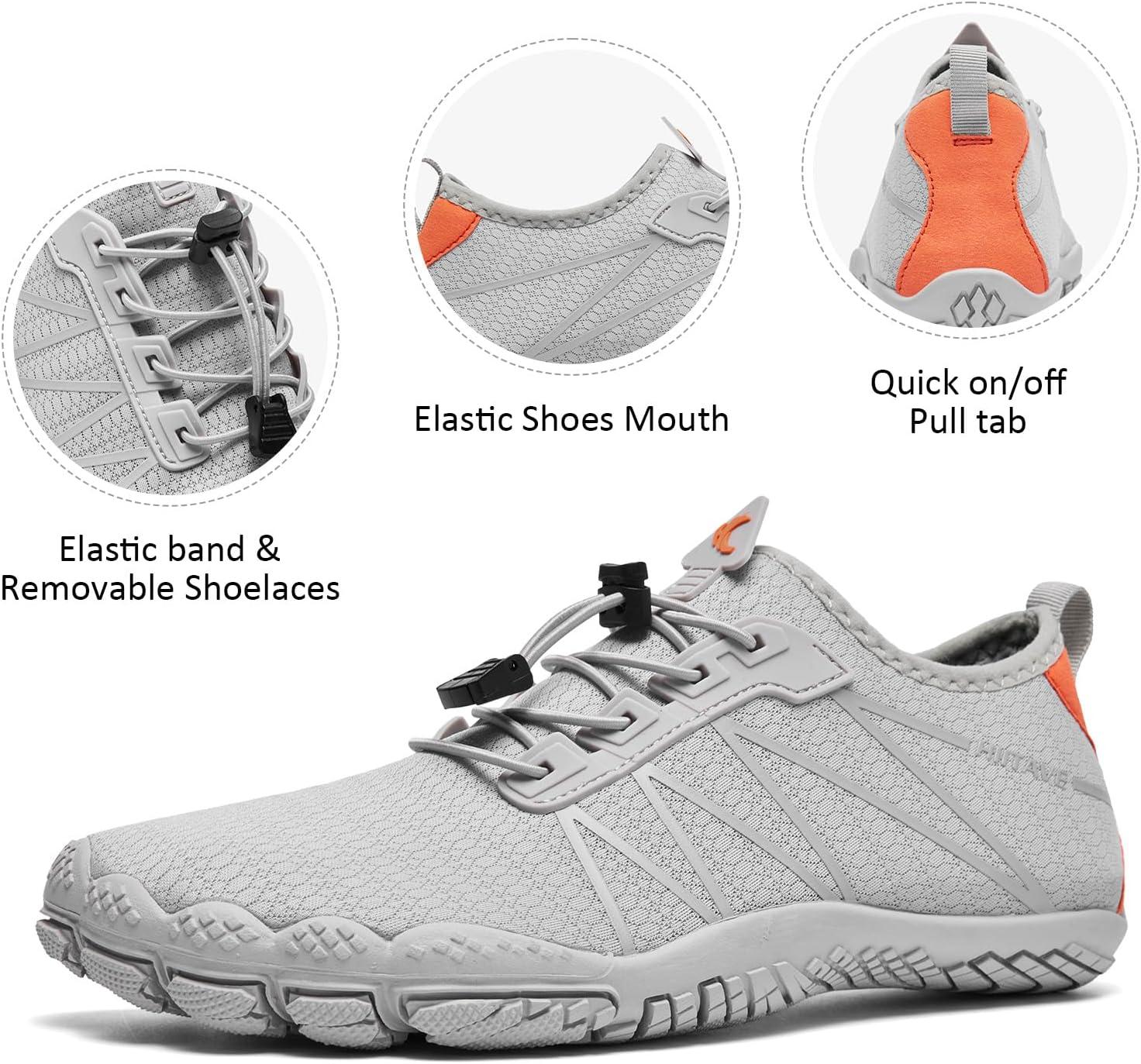 HIITAVE Men Barefoot Water Shoes Beach Aqua Socks Quick Dry for Outdoor Sport Hiking Swiming Surfing(Light Gray/Orange)