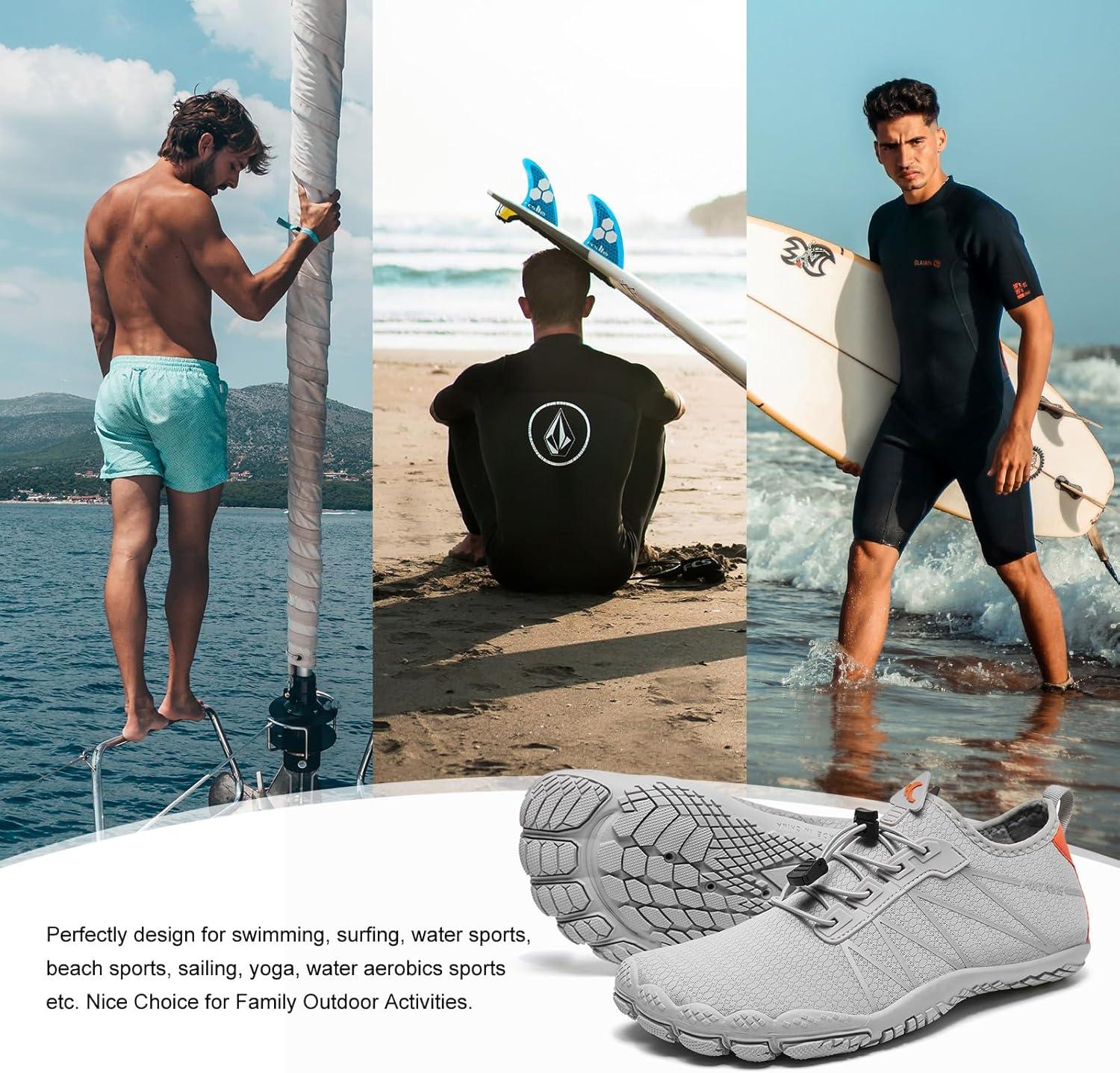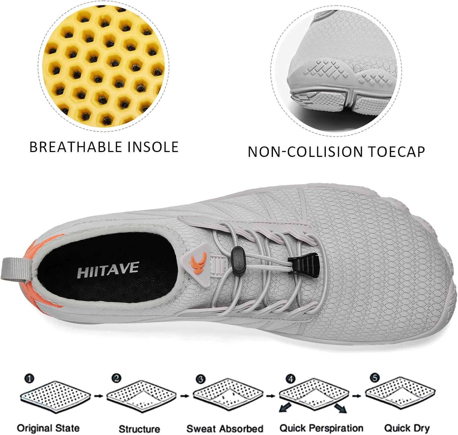 HIITAVE Men Barefoot Water Shoes Beach Aqua Socks Quick Dry for Outdoor Sport Hiking Swiming Surfing(Grey)