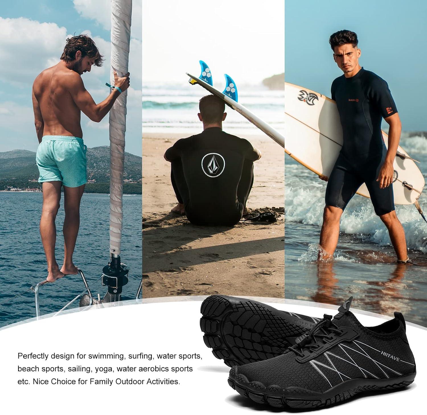 HIITAVE Men Barefoot Water Shoes Beach Aqua Socks Quick Dry for Outdoor Sport Hiking Swiming Surfing(M-black)