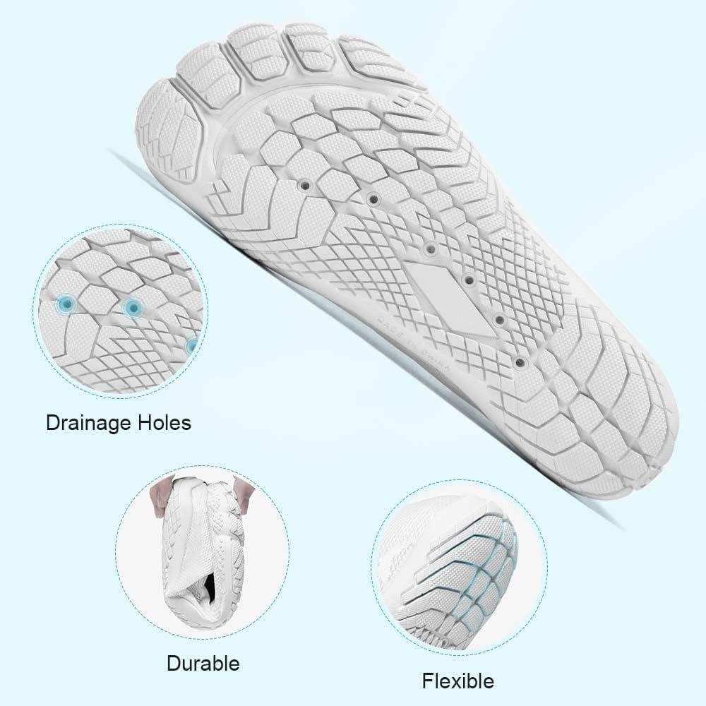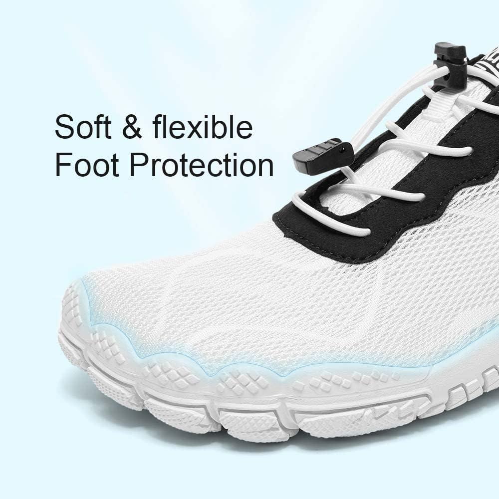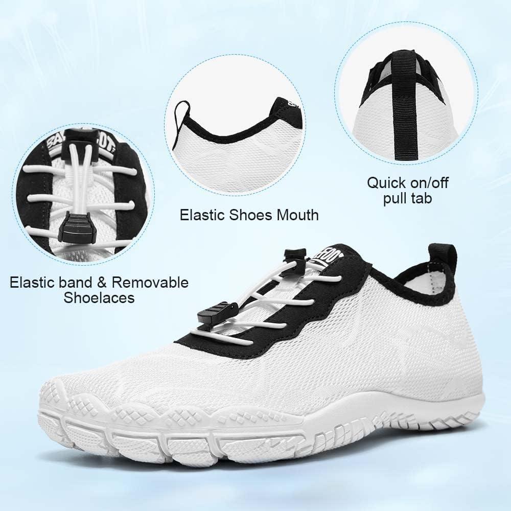 HIITAVE Men Barefoot Water Shoes Beach Aqua Socks Quick Dry for Outdoor Sport Hiking Swiming Surfing(White/Black)
