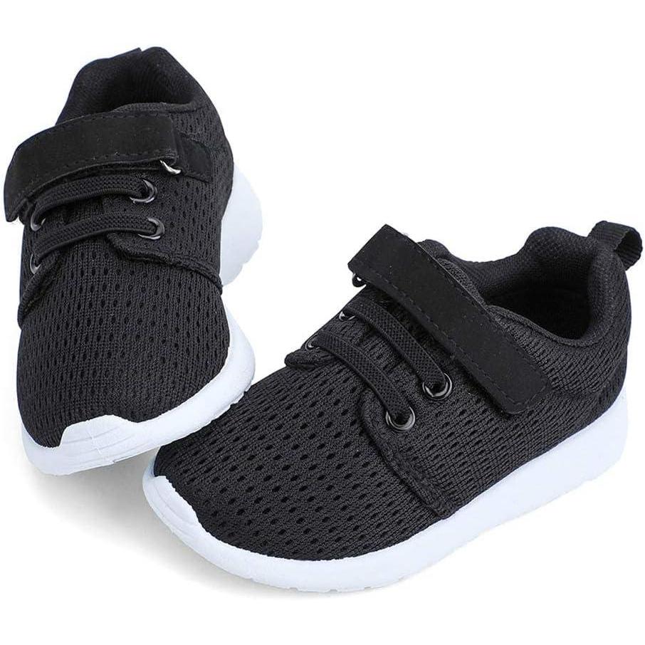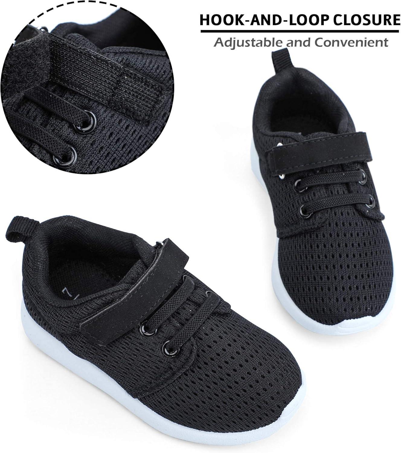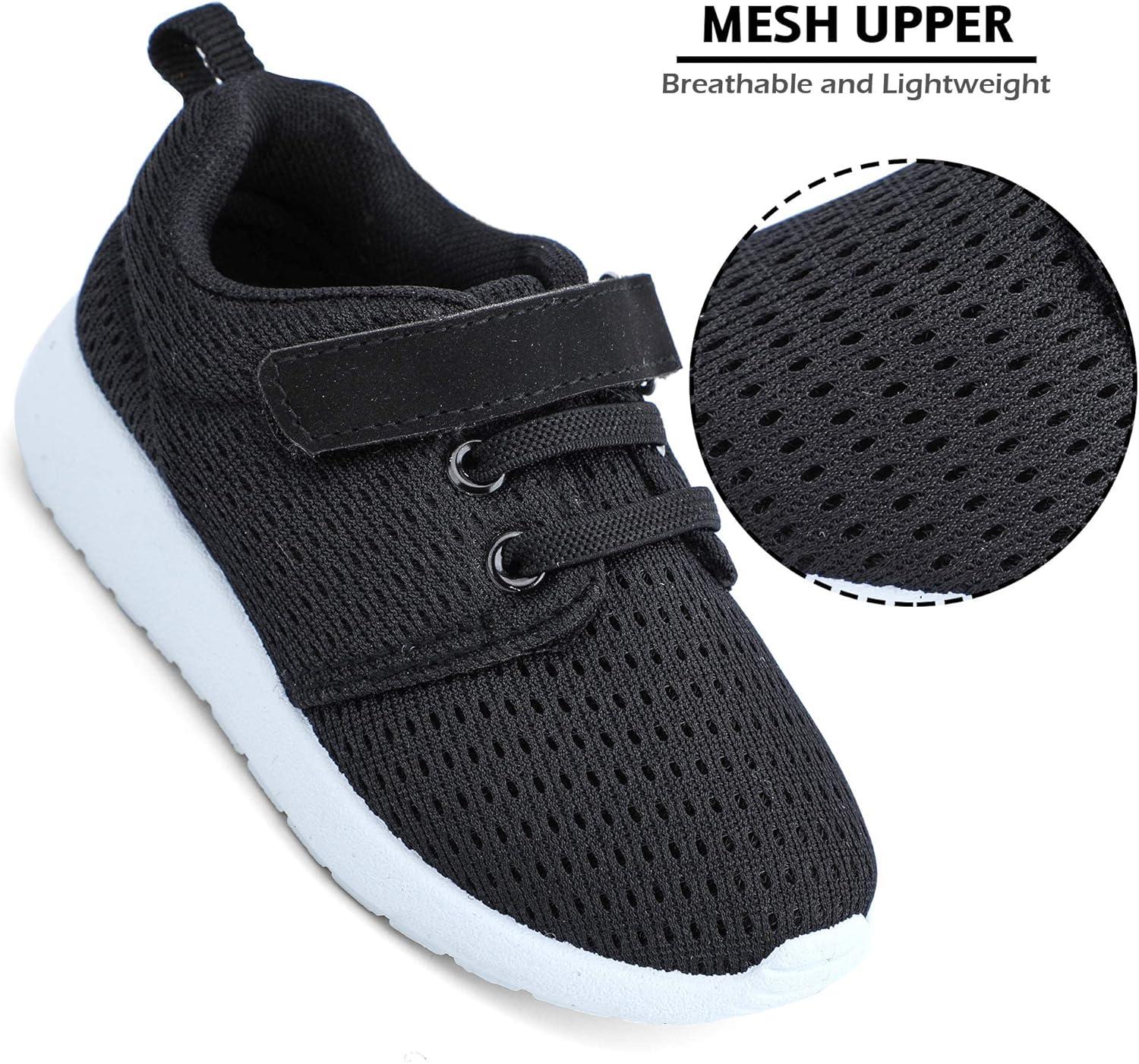 HIITAVE Toddler/Little Kid Boys Girls Shoes Running/Walking Sports Sneakers(Black/White)
