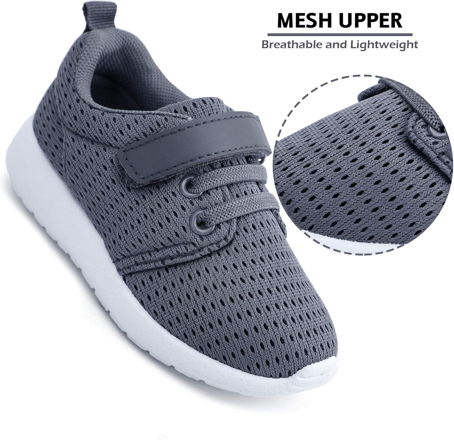 HIITAVE Toddler/Little Kid Boys Girls Shoes Running/Walking Sports Sneakers(Drak Grey/White)