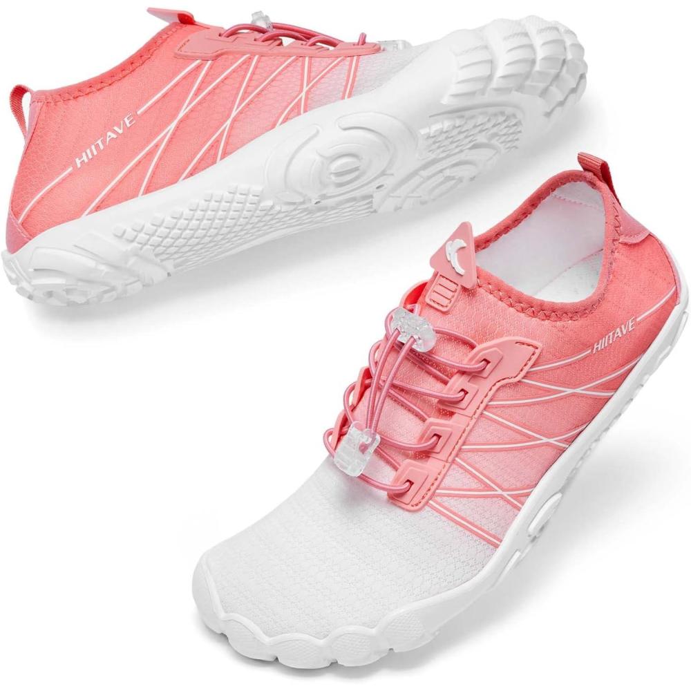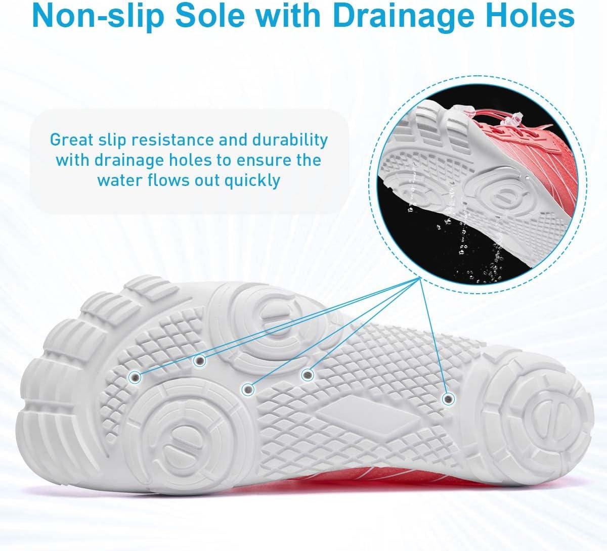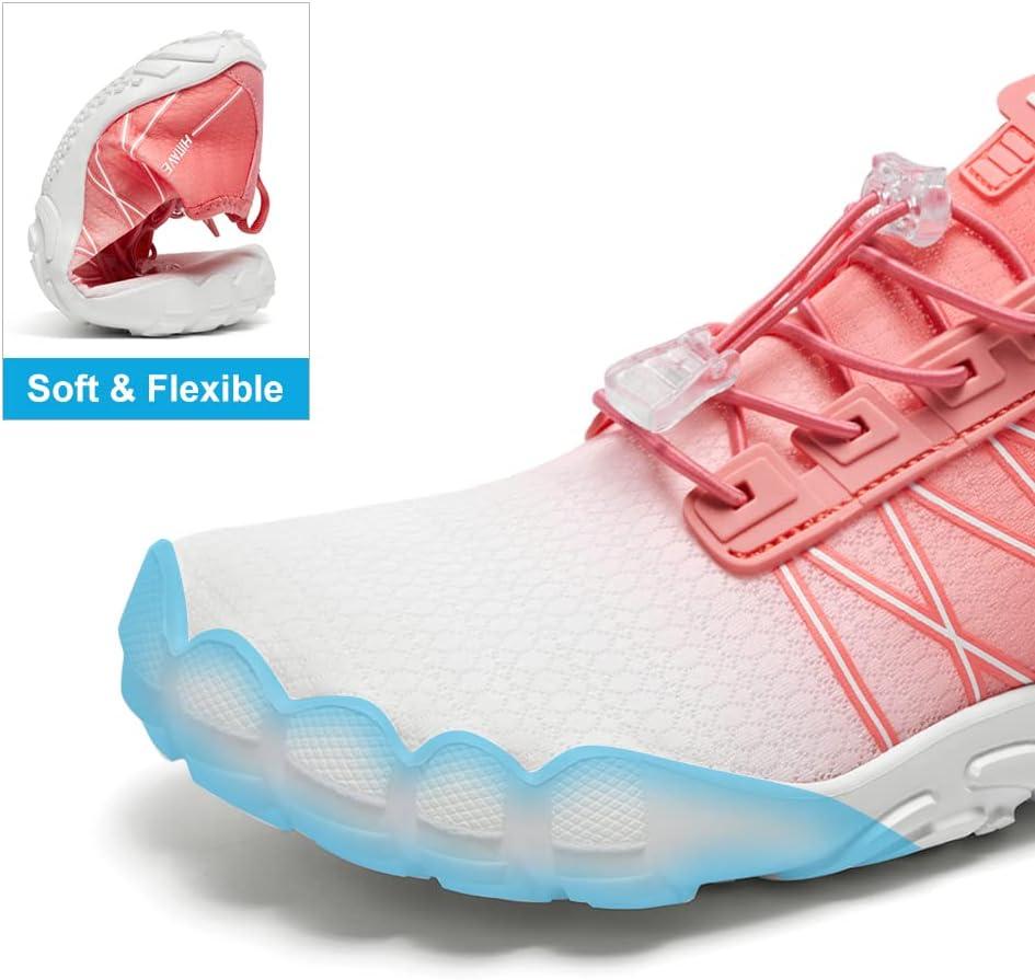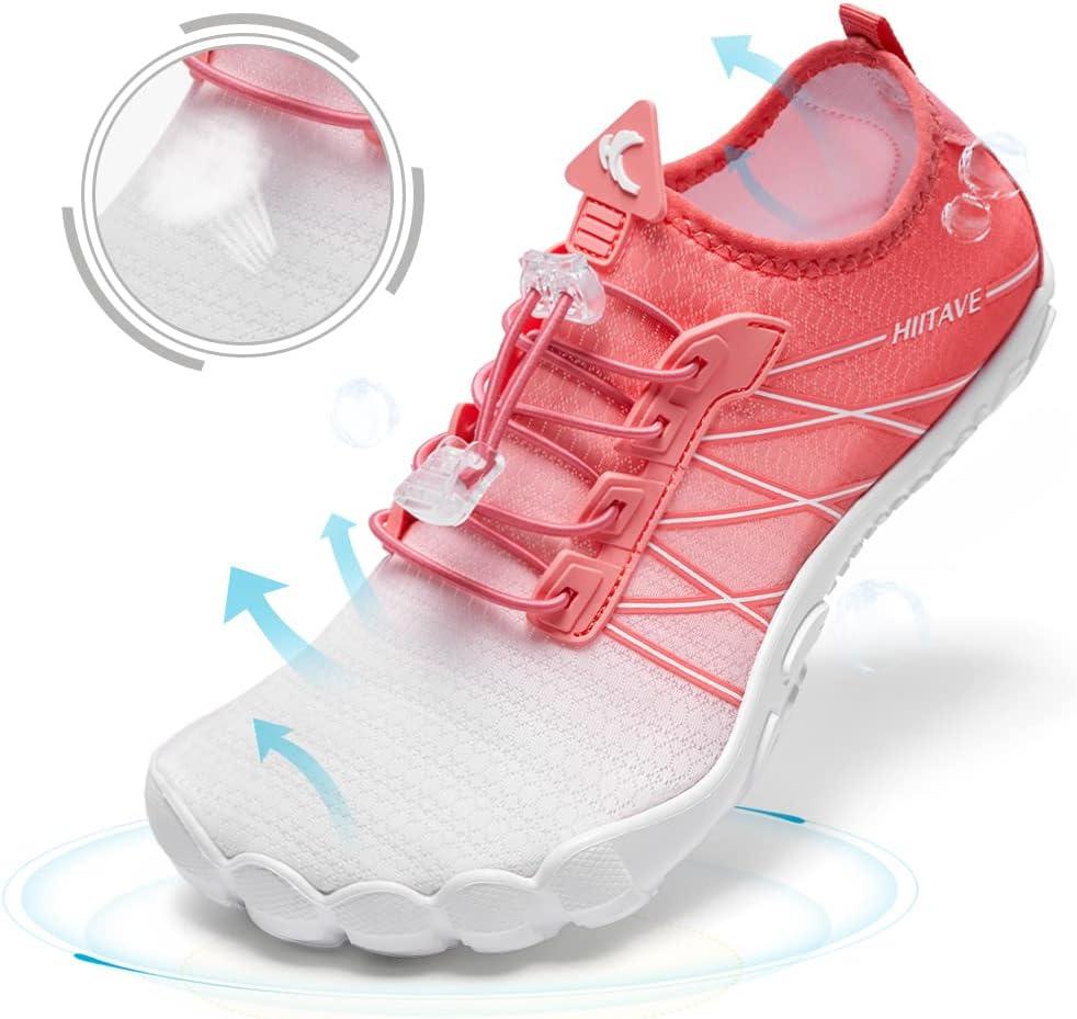 HIITAVE Water Shoes Non Slip Aqua Shoes Barefoot Quick Dry Lightweight with Beach River Swim Pool for Men Women Gradient Color…(White/Watermelon Red)