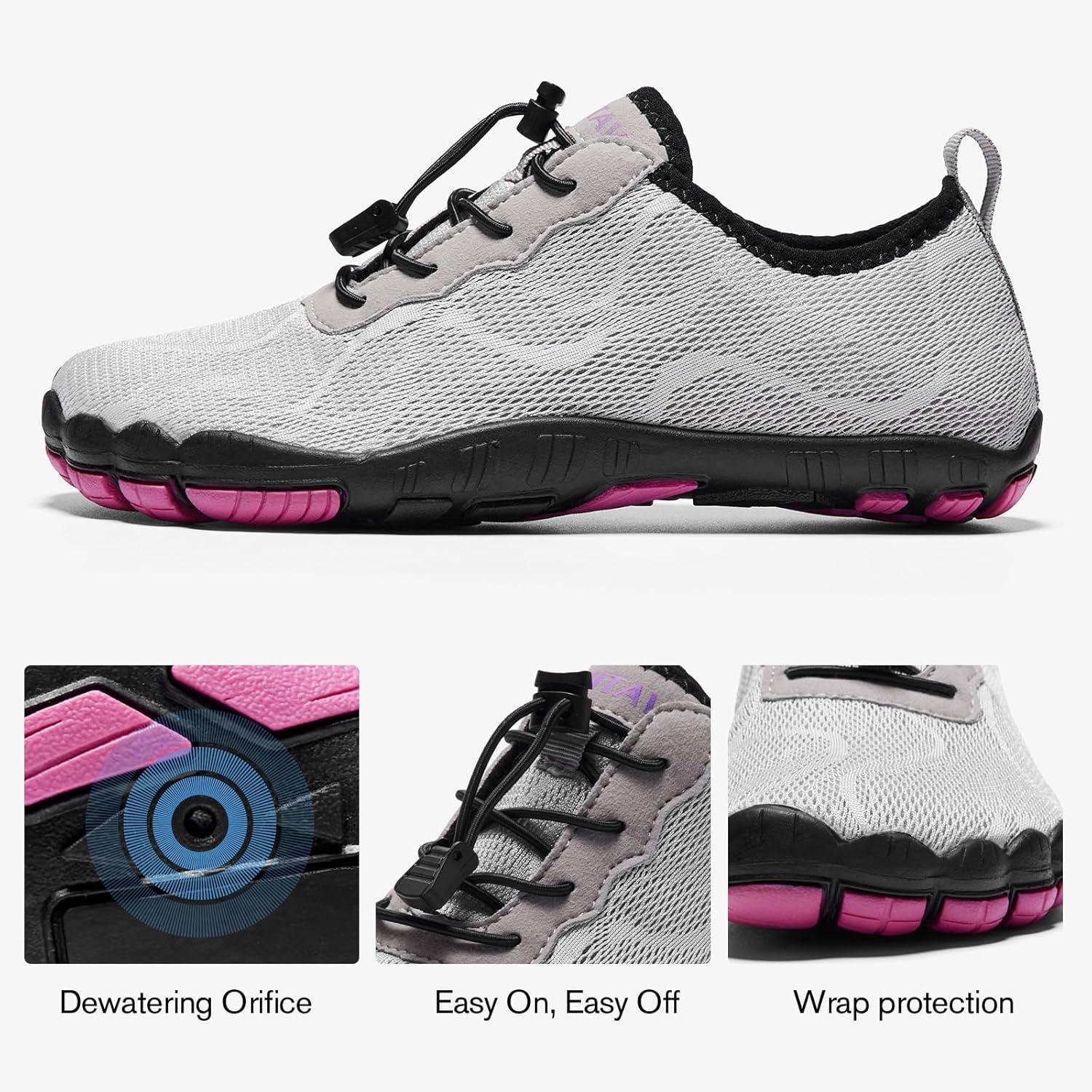hiitave Womens Water Shoes Quick Dry Barefoot for Swim Diving Surf Aqua Sports Pool Beach Walking Yoga(A/Light Gray/Purple)