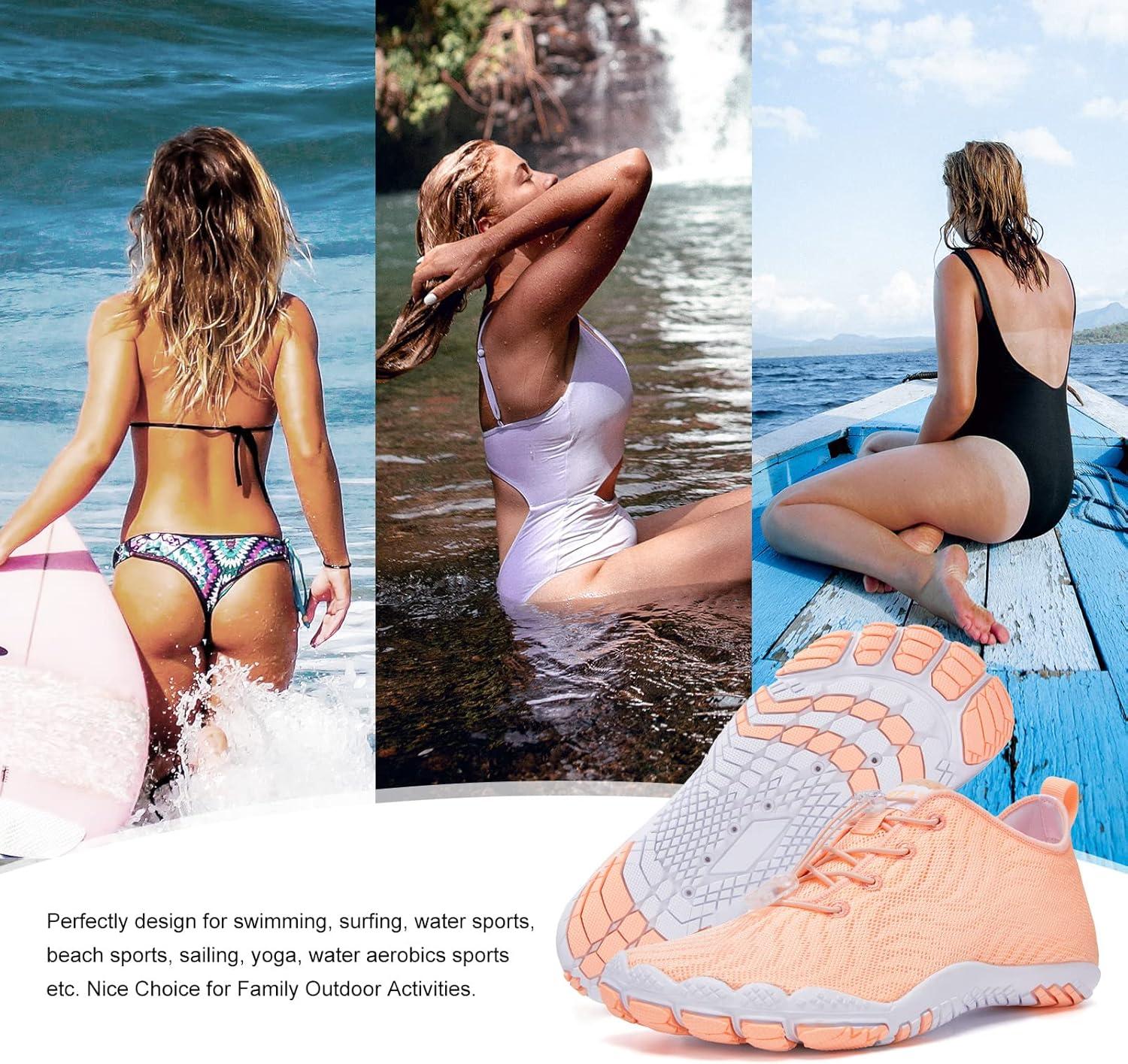 hiitave Womens Water Shoes Quick Dry Barefoot for Swim Diving Surf Aqua Sports Pool Beach Walking Yoga(Orange/Pink)